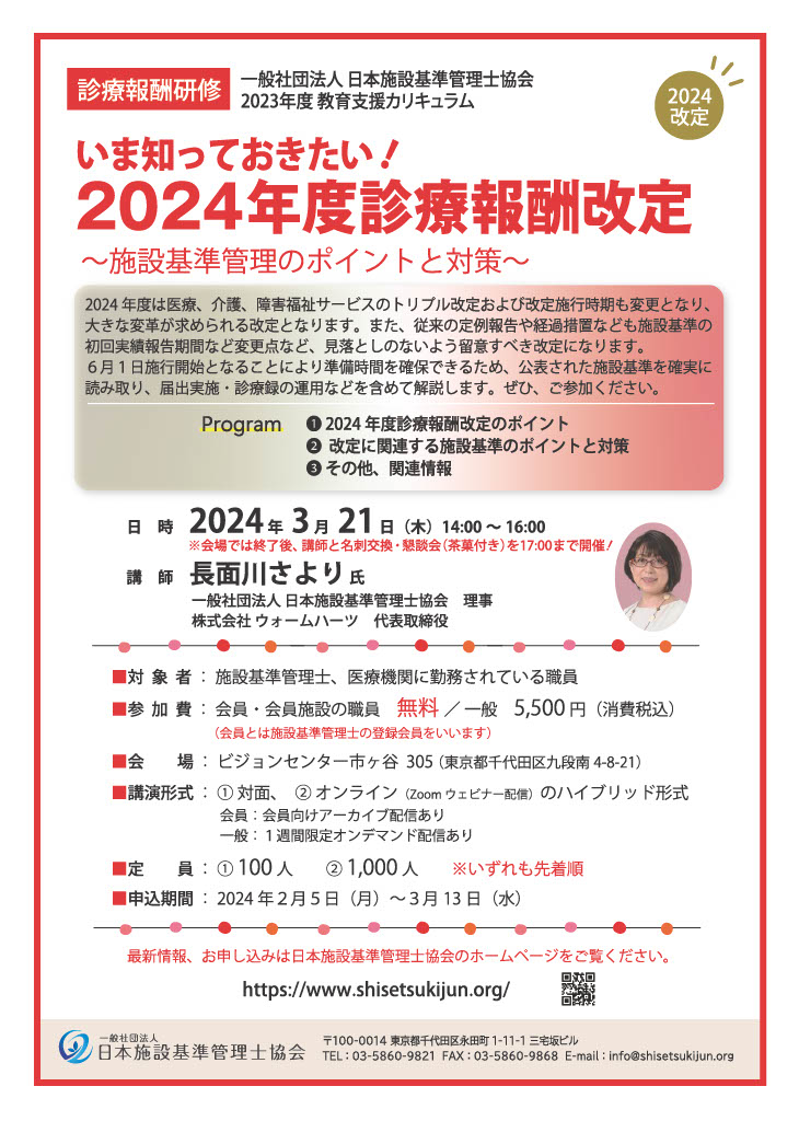 参加対象 | 施設基準管理士/医療機関に勤務されている職員 |