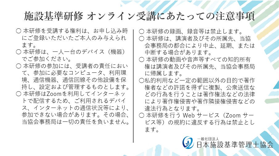 ・本研修の録画、録音、撮影については固くお断りいたします。