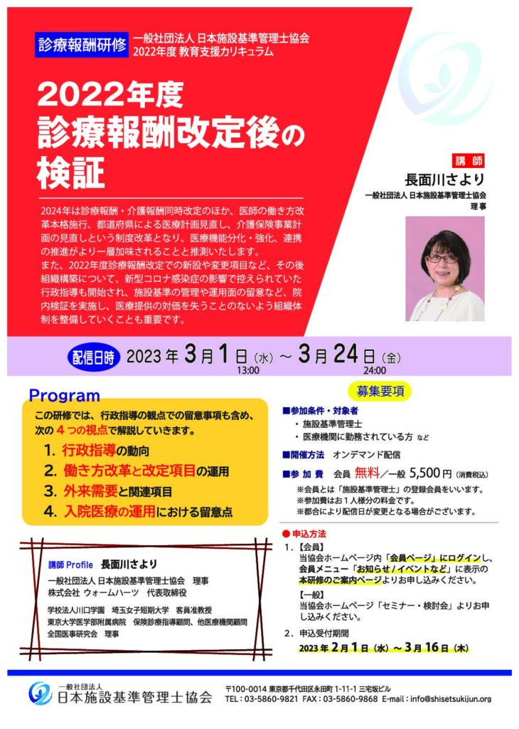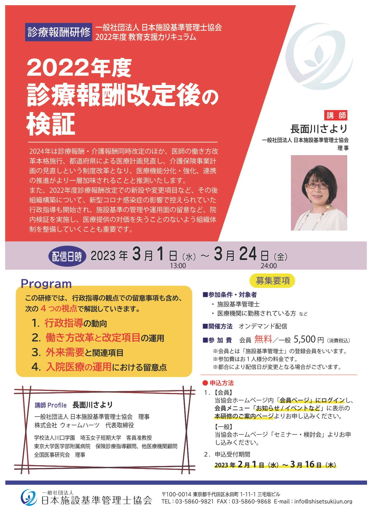 本研修のオンデマンド配信視聴期間は2023年3月1日(水)~3月24日(金)を予定しています。