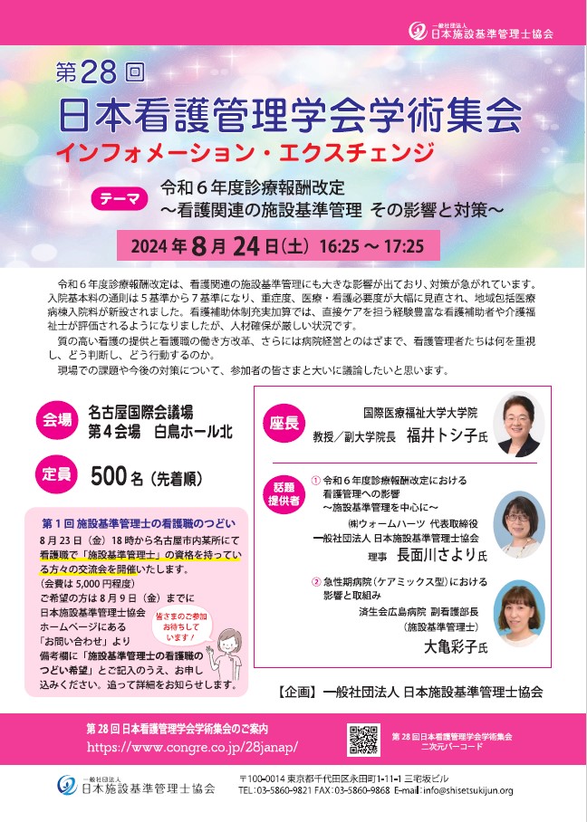 第28回日本看護管理学会では、「施設基準管理」をテーマにした、