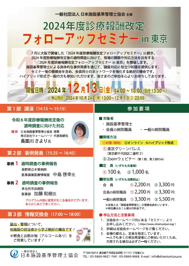 「2024年度診療報酬改定フォローアップセミナー in 東京」を開催します。